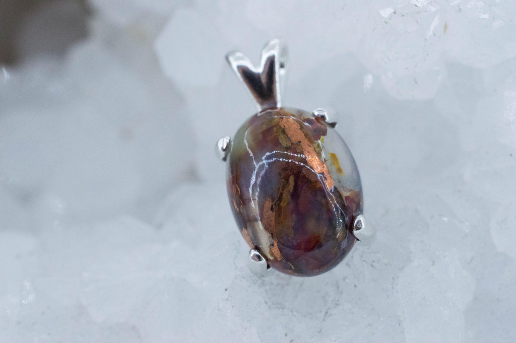 Aquadite™ from Indonesia is a new type of Chalcedony that is heavily influenced by copper with many having copper inclusions inside. This particular stone came from one of the original production runs (not seen since) with heavy copper inclusions and great coloring.