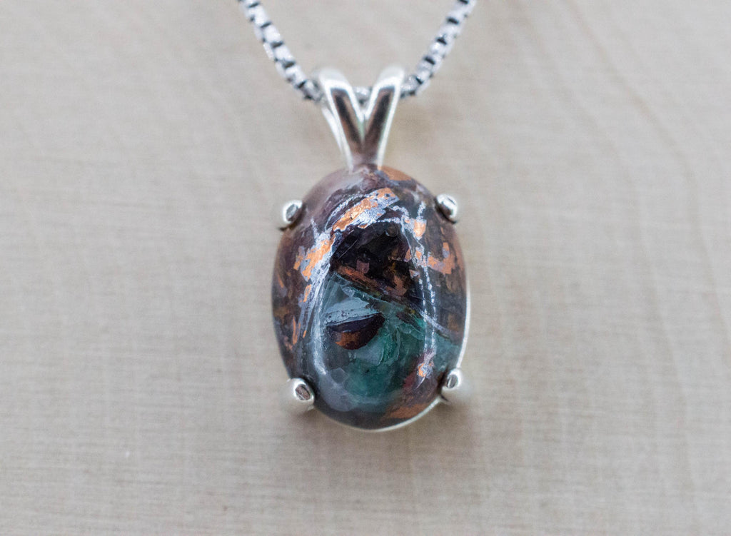 Aquadite™ from Indonesia is a new type of Chalcedony that is heavily influenced by copper with many having copper inclusions inside. This particular stone came from one of the original production runs (not seen since) with heavy copper inclusions and great coloring.