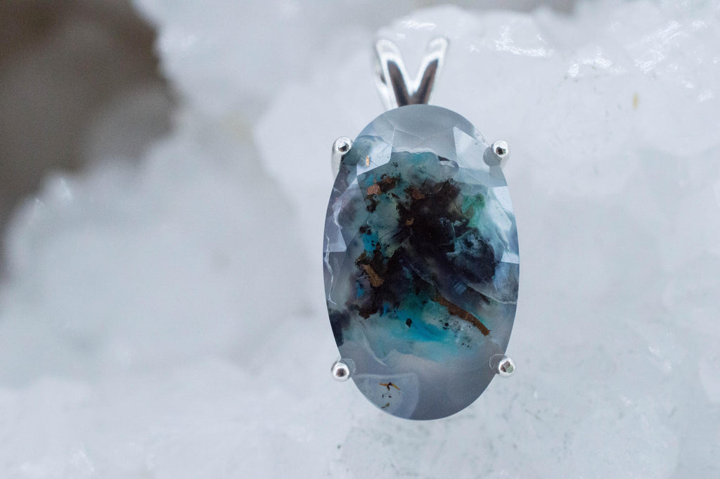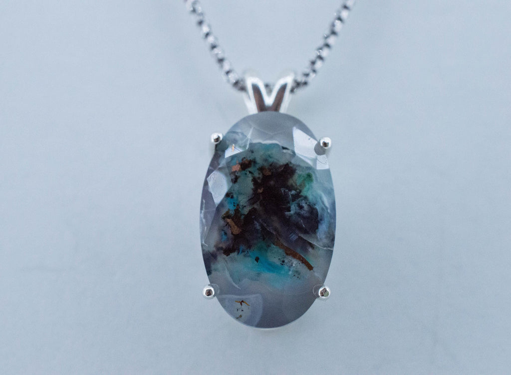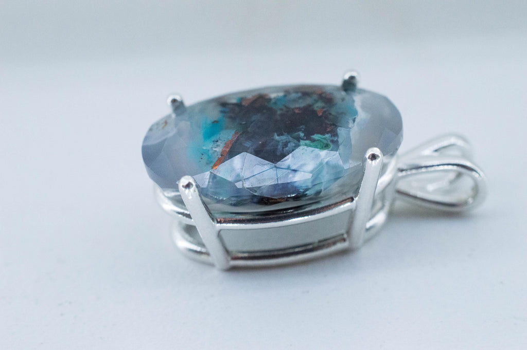 Aquadite™ from Indonesia is a new type of Chalcedony that is heavily influenced by copper with many having copper inclusions inside. This particular stone came from one of the original production runs (not seen since) with heavy copper inclusions and great coloring.