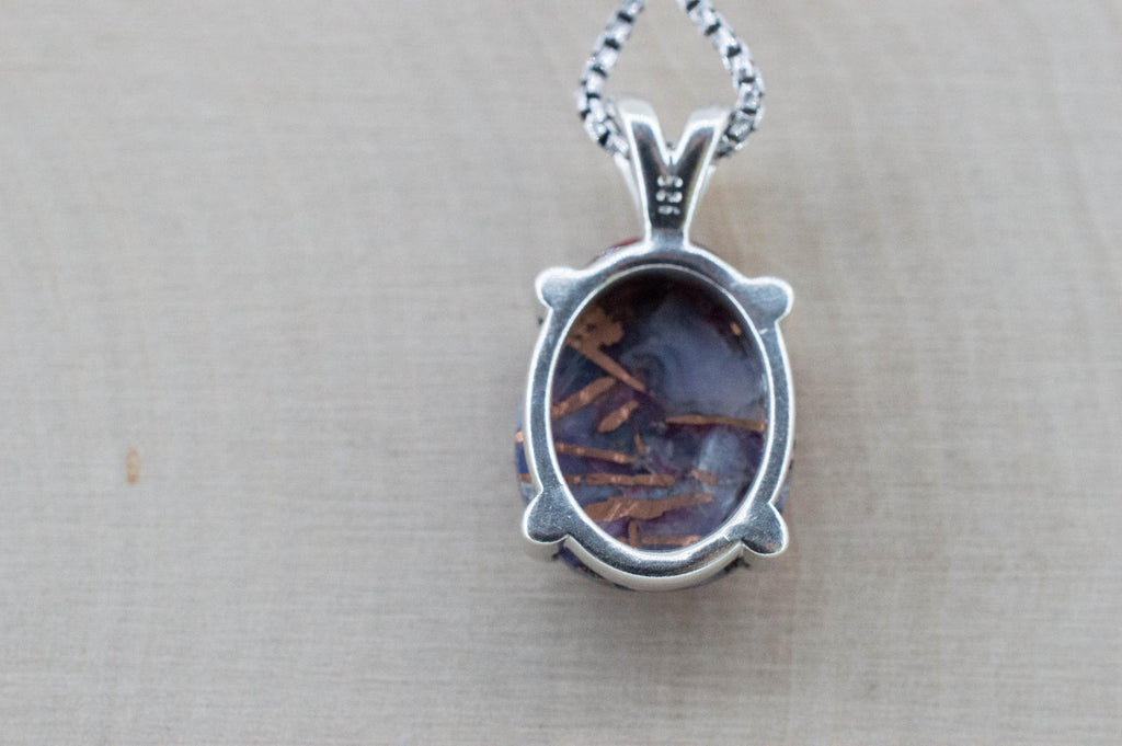 Aquadite™ from Indonesia is a new type of Chalcedony that is heavily influenced by copper with many having copper inclusions inside. This particular stone came from one of the original production runs (not seen since) with heavy copper inclusions and great coloring.