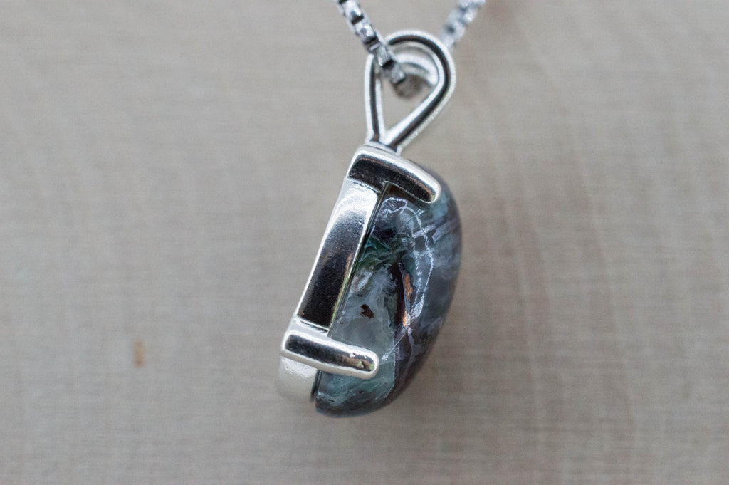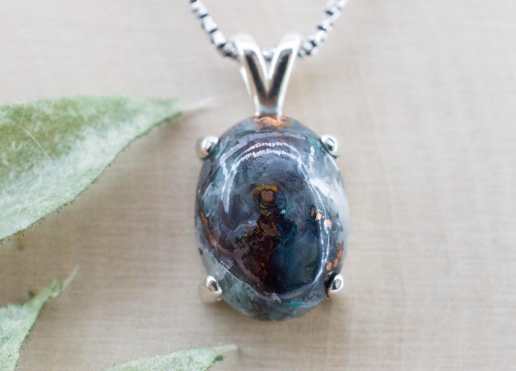 Aquadite™ from Indonesia is a new type of Chalcedony that is heavily influenced by copper with many having copper inclusions inside. This particular stone came from one of the original production runs (not seen since) with heavy copper inclusions and great coloring.