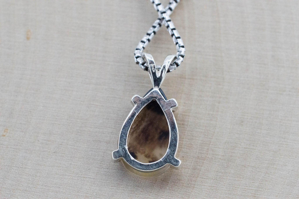 Dendritic Agate is a type of stone with "inclusions" of dendrites which are small fern like pieces of iron, manganese or other metal oxides that create interesting and very unique patterns in the stone.