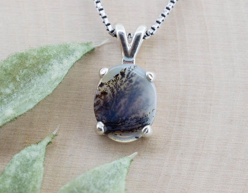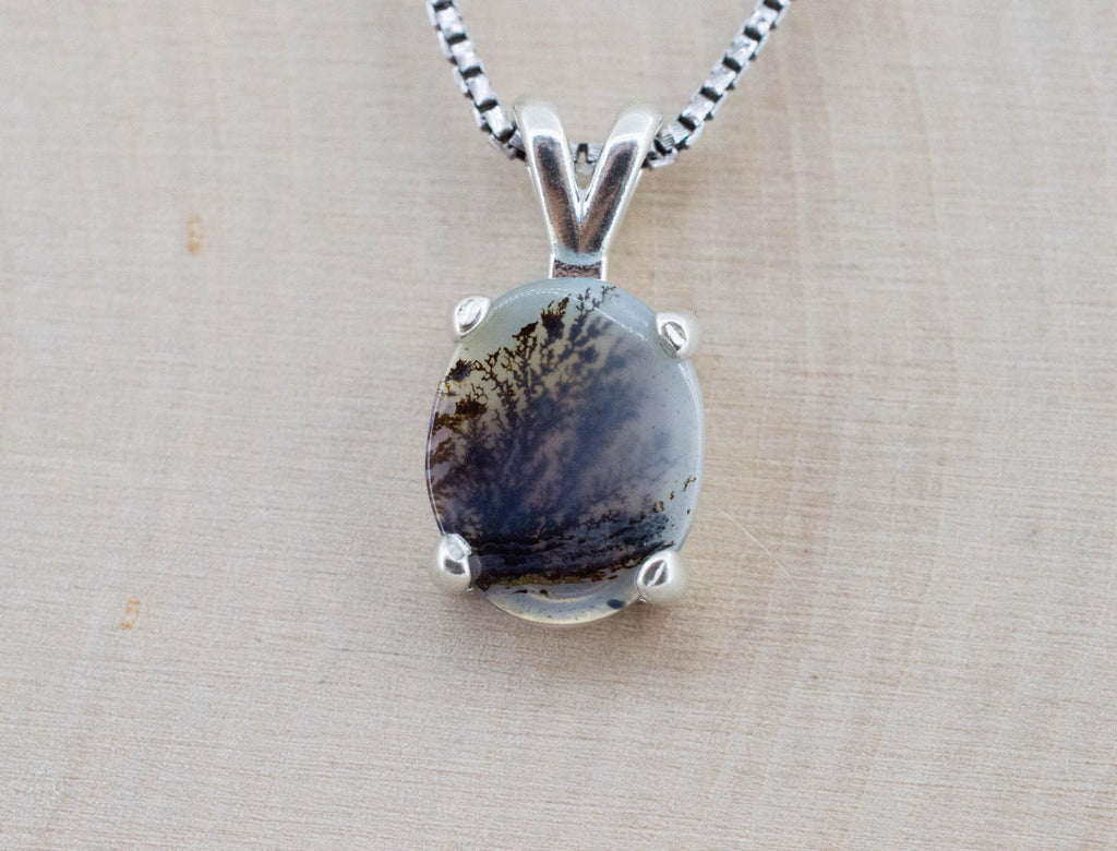 Dendritic Agate is a type of stone with "inclusions" of dendrites which are small fern like pieces of iron, manganese or other metal oxides that create interesting and very unique patterns in the stone.
