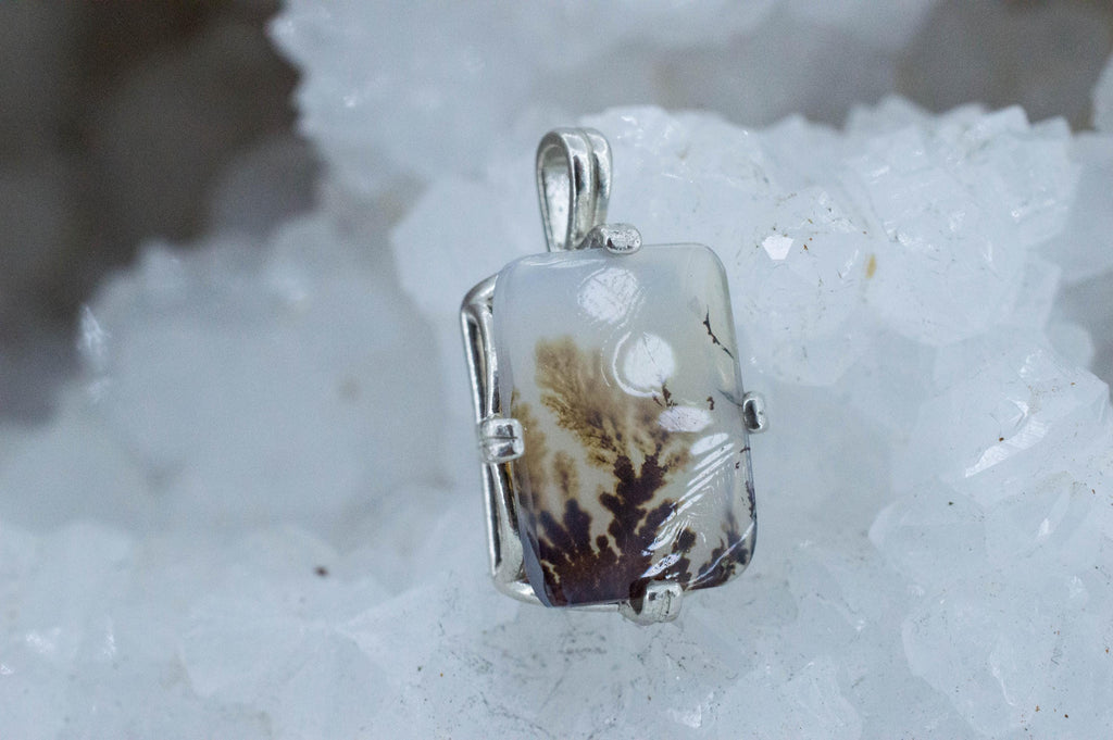 Dendritic Agate is a type of stone with "inclusions" of dendrites which are small fern like pieces of iron, manganese or other metal oxides that create interesting and very unique patterns in the stone.