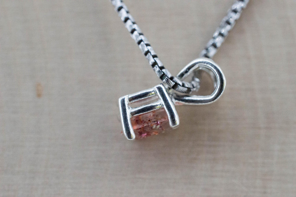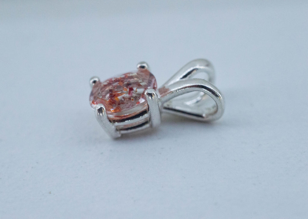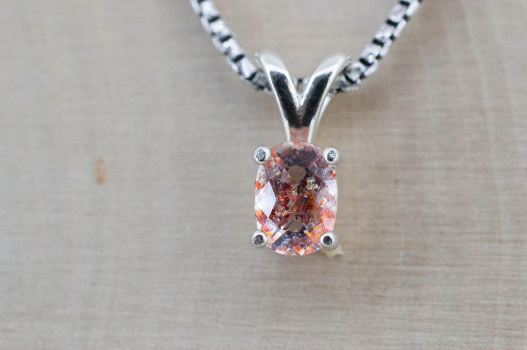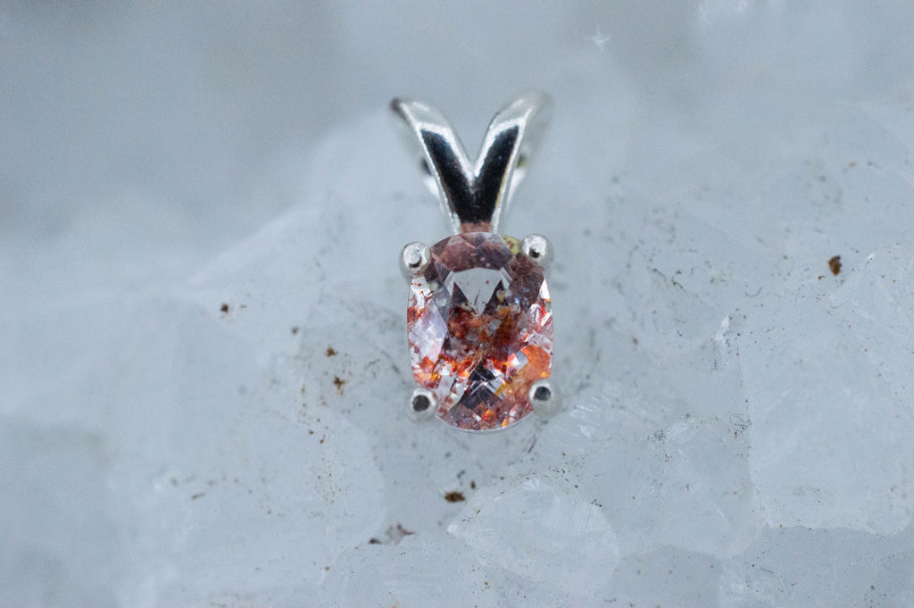This awesome stone is colorless but has Red and Black specs of Hematite that naturally grew inside and may give off a small rainbow effect when the light hits it. It is a rare occurrence that makes these gems very unique!