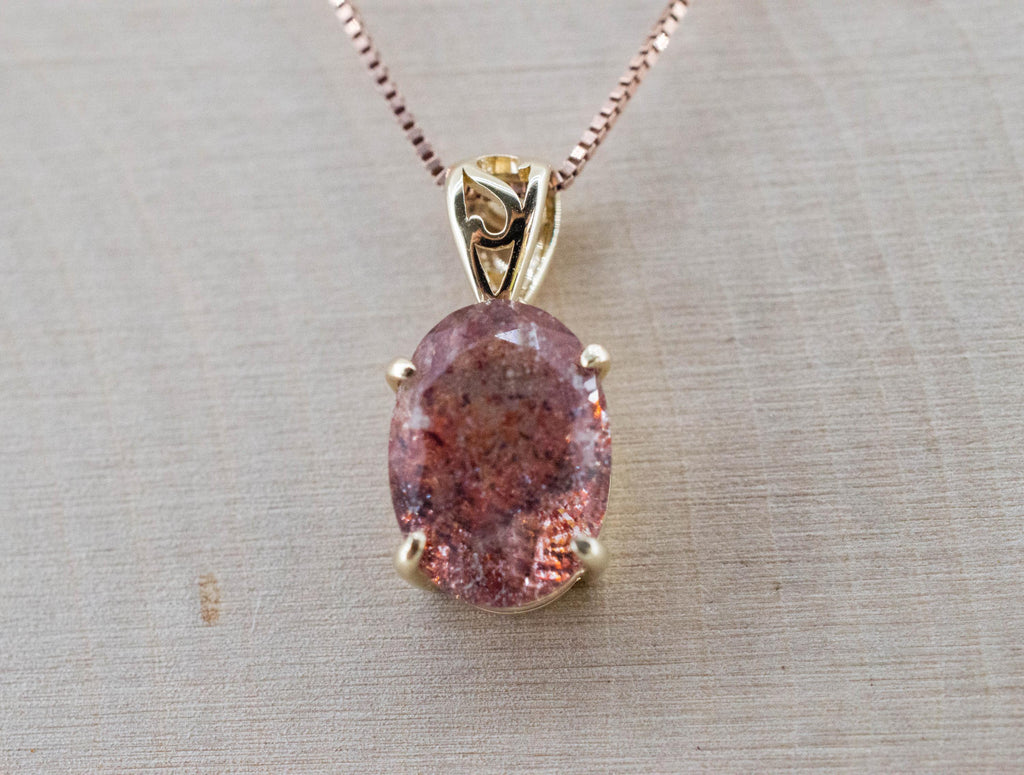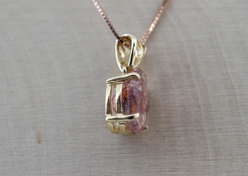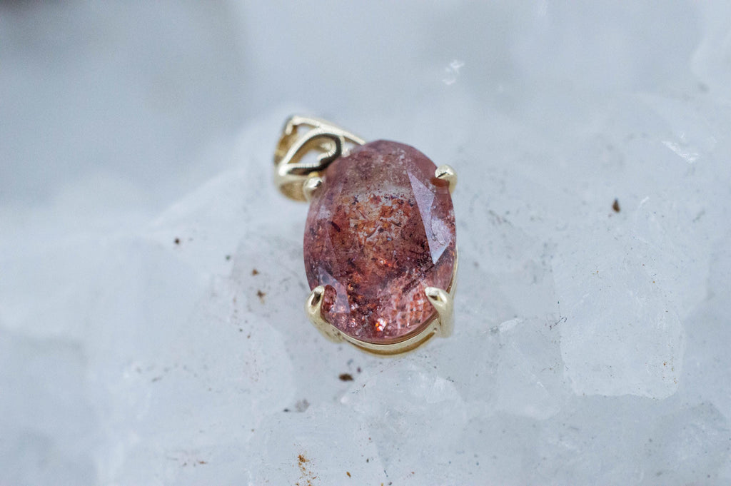 This awesome stone is colorless but has Red and Black specs of Hematite that naturally grew inside and may give off a small rainbow effect when the light hits it. It is a rare occurrence that makes these gems very unique!