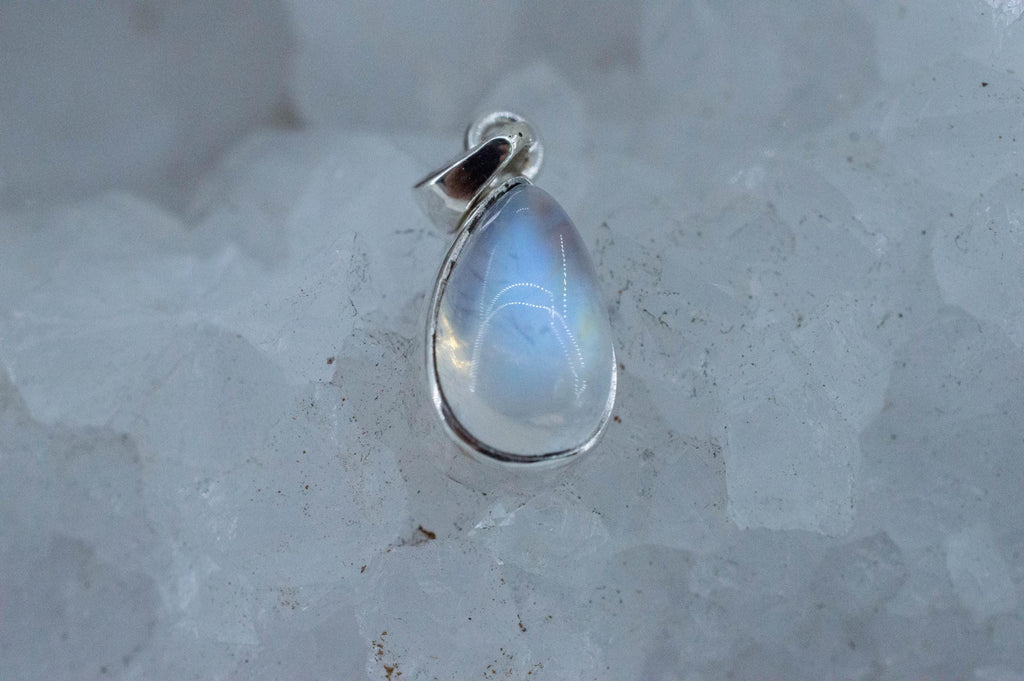 Rainbow Moonstone is a very unique stone that can show flashes of colors as the light hits it in different directions. Each stone will have its own patterns and colors which makes each one unique to itself!