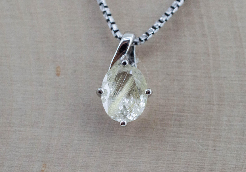Rutile Quartz is a colorless stone but has golden and/or black Rutiles that occur naturally inside the gem and is a rare occurrence that makes these gems very unique! You will not see two Rutile Quartz stones that look exactly alike.