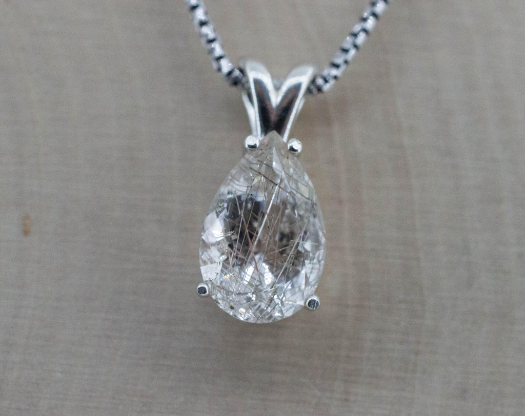 Rutile Quartz is a colorless stone but has golden and/or black Rutiles that occur naturally inside the gem and is a rare occurrence that makes these gems very unique! You will not see two Rutile Quartz stones that look exactly alike.