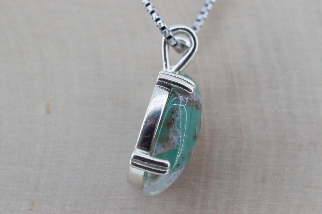 Aquaprase™ is one of the newest discovered gemstones that stumped many labs as to what it was. This amazing stone has a unique blue/green color with a stunning glow to it when the light hits it just right that is colored by chromium and nickel.
