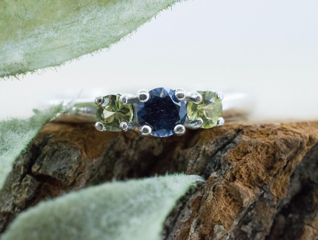 Blue Spinel and Mali Garnet Ring, Natural Untreated Sri Lanka Blue Spinel