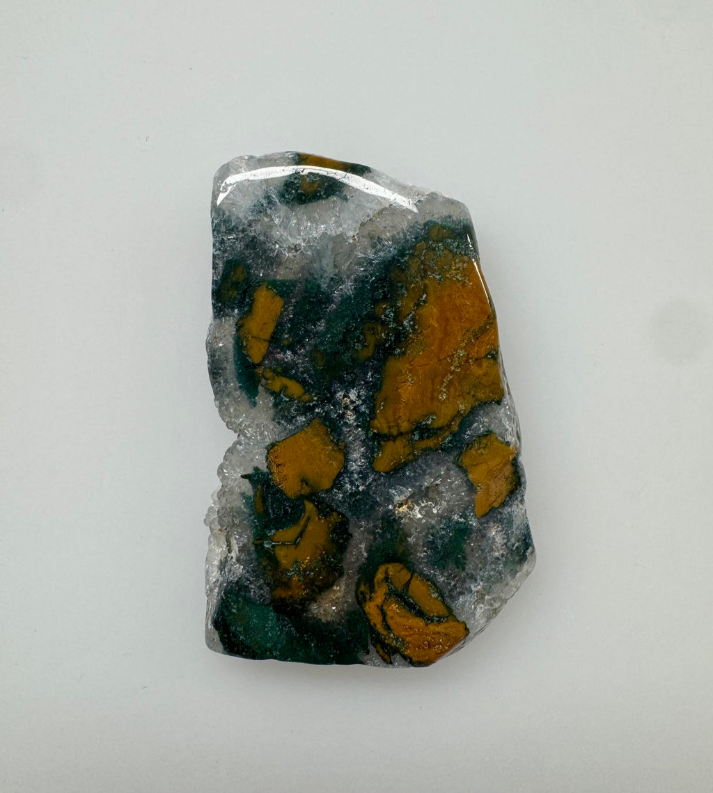 This a natural Brecciated Jasper that has unique patterns and coloring in a polished slab form.