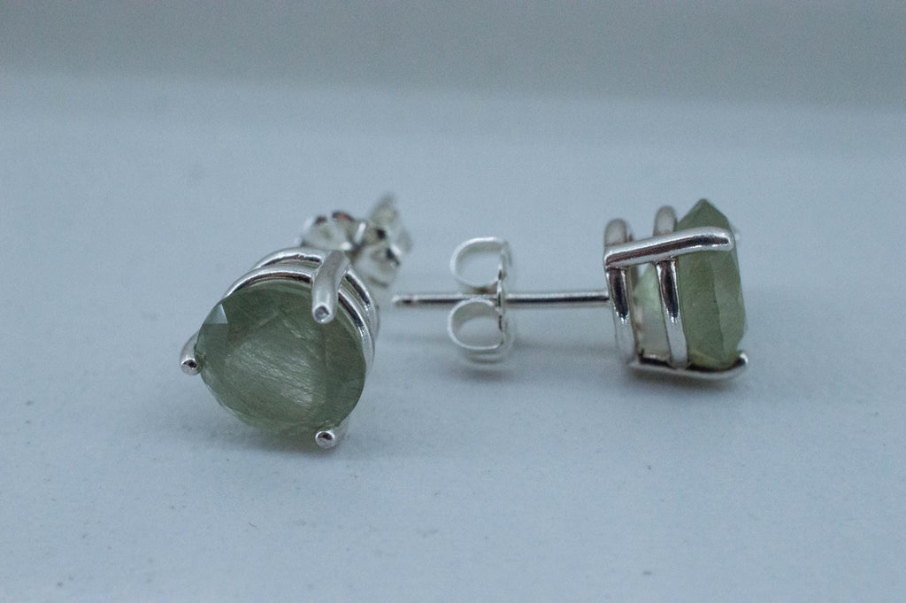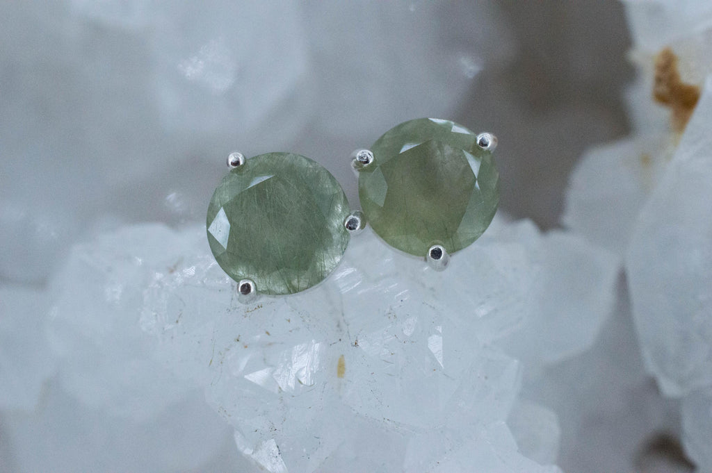 Byssolite Quartz Earrings; Natural Untreated Tanzania Included Quartz; 3.690cts