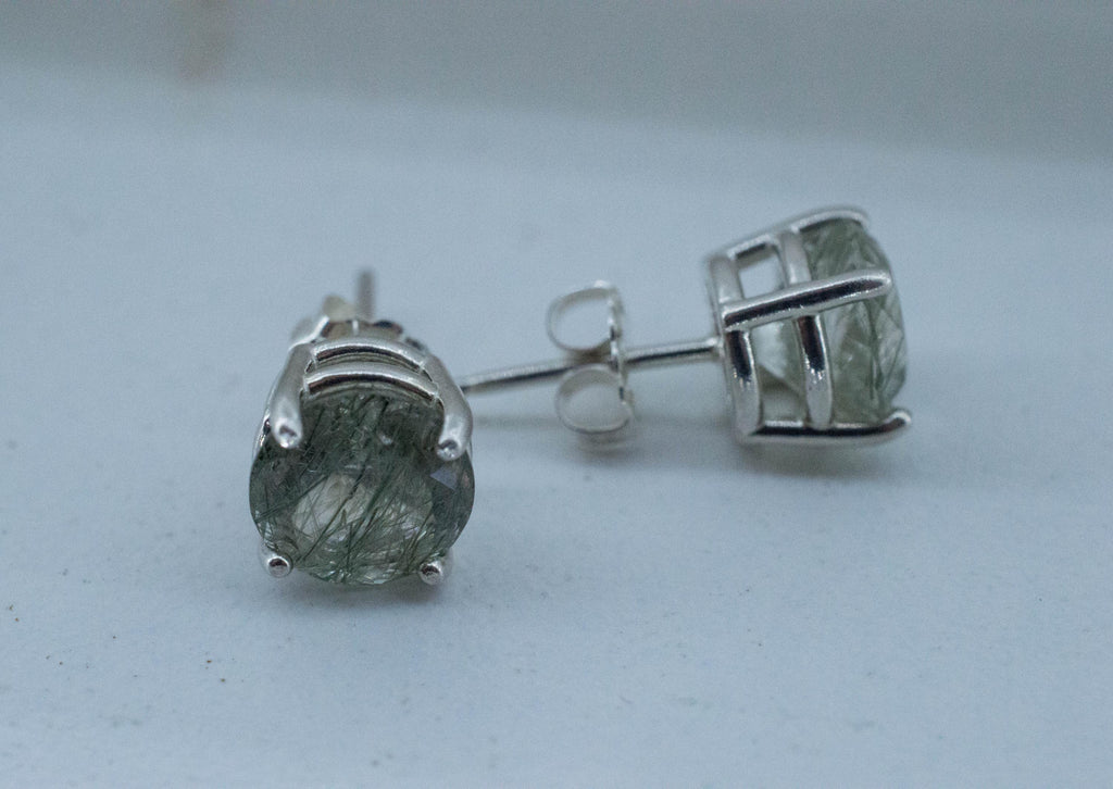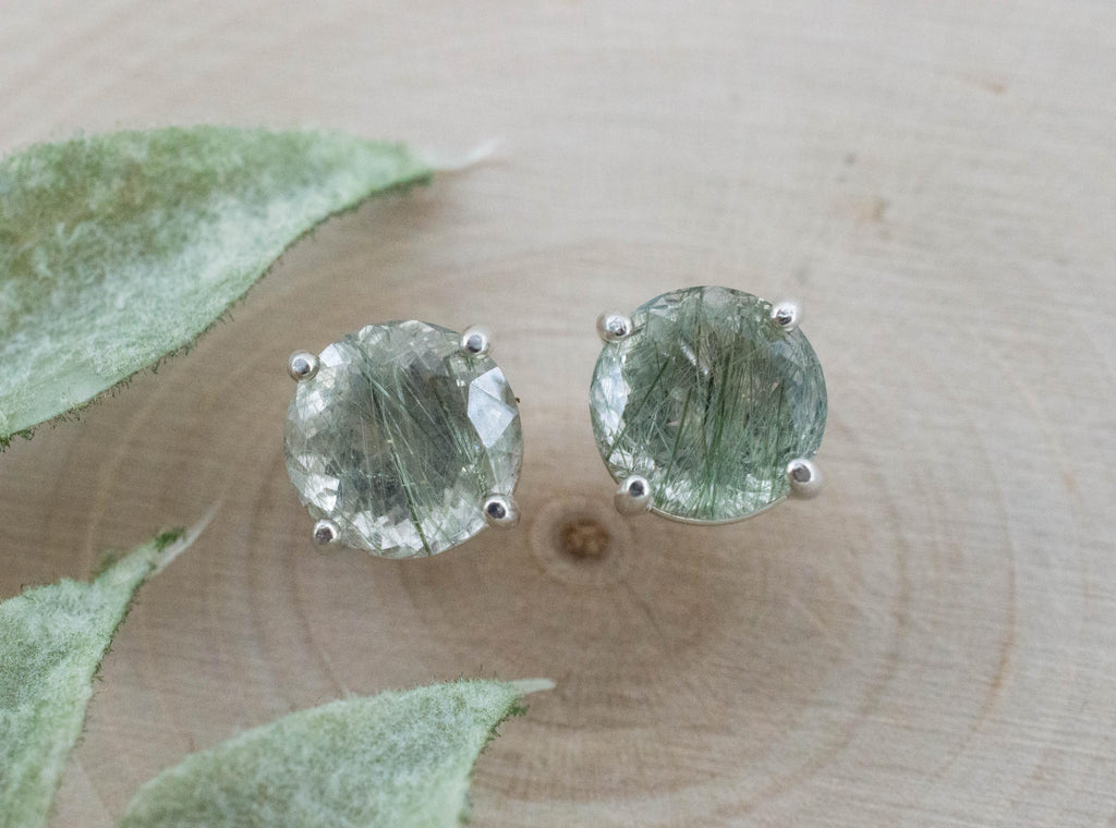 Byssolite Quartz Earrings; Natural Untreated Tanzania Included Quartz; 3.745cts