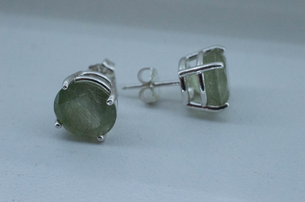 Byssolite Quartz Earrings; Natural Untreated Tanzania Included Quartz; 7.140cts