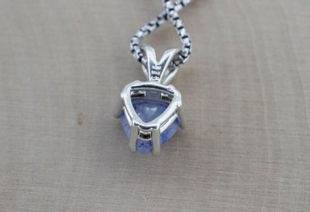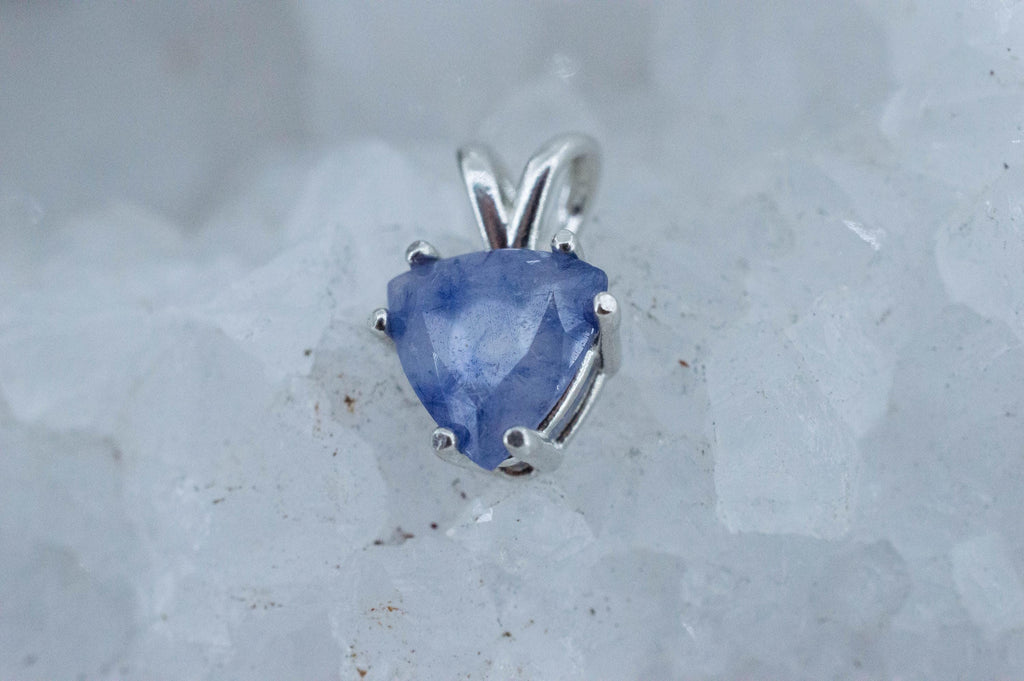Dumortierite is a rare type of stone that is very rich in aluminum and has many industrial uses but looks great and is a hardy jewelry stone. In this piece, the Dumortierite formed inside the Quartz Crystal making unique patterns.