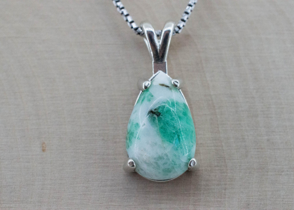 This stone is very unique where the Emerald Crystals and Quartz Crystals formed together to make unusual patterns.