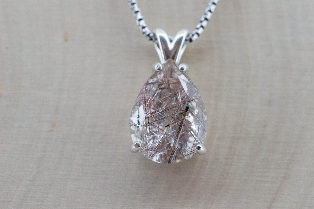 Rutile Quartz is a colorless stone but has golden and/or black Rutiles that occur naturally inside the gem and is a rare occurrence that makes these gems very unique! You will not see two Rutile Quartz stones that look exactly alike.