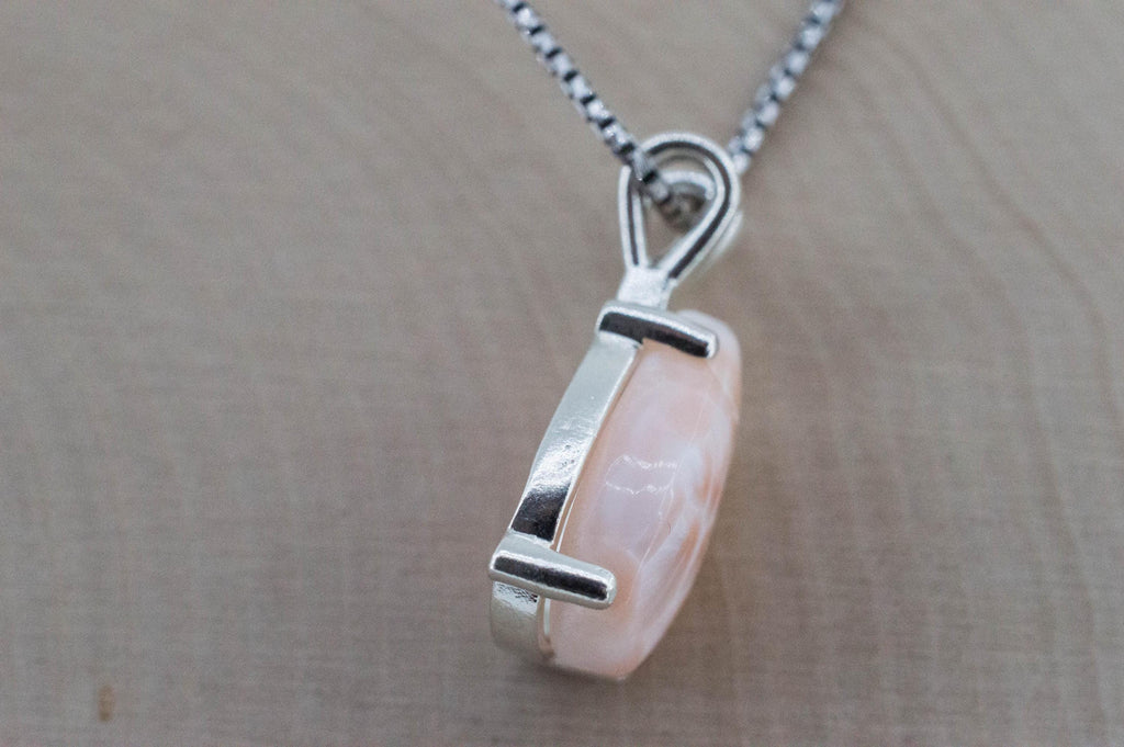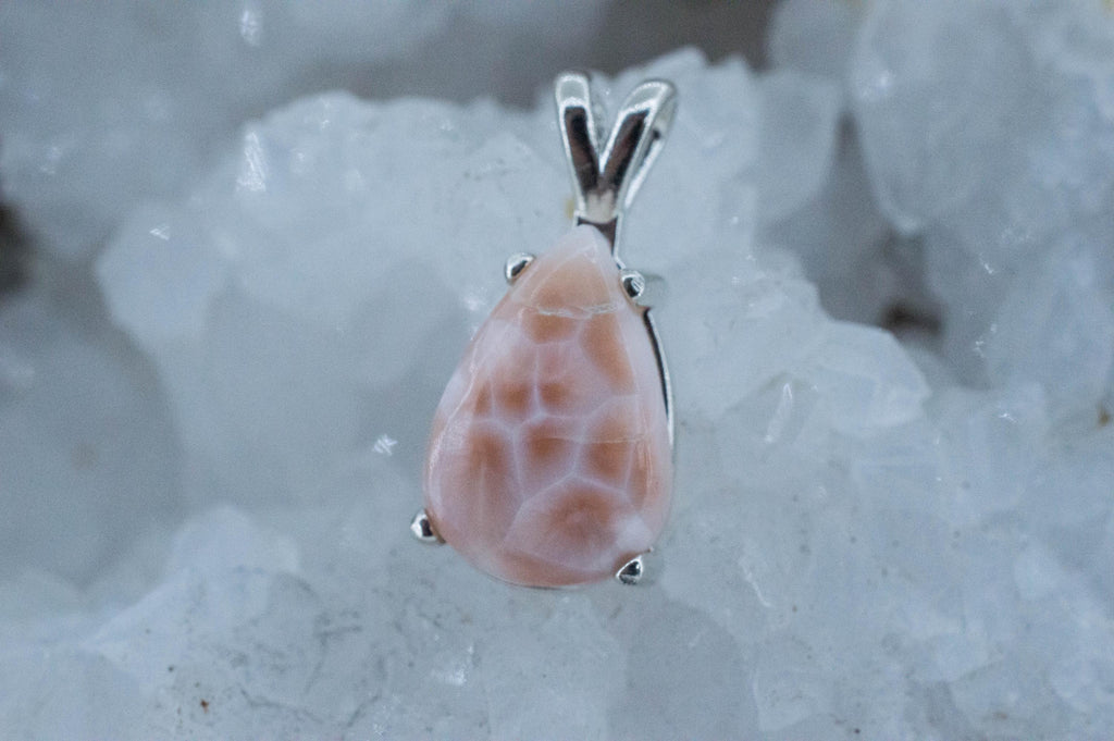 This Thomsonite also called Pink Larimar like all of them has interesting and unique patterns and great luster and will go great with most styles or occasions!