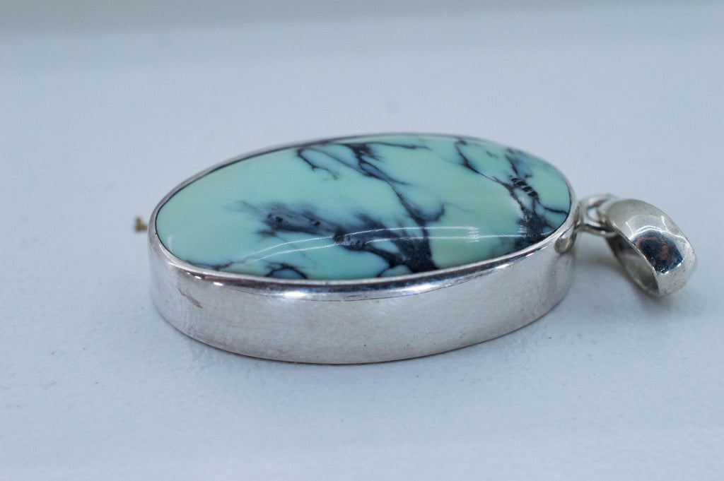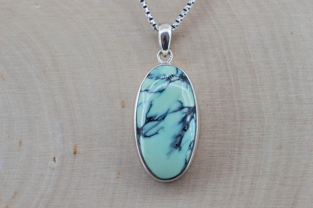This amazing stone is a natural mixture of Turquoise and Variscite from Snowville, Utah that formed together for a unique blue/green color with interesting patterns
